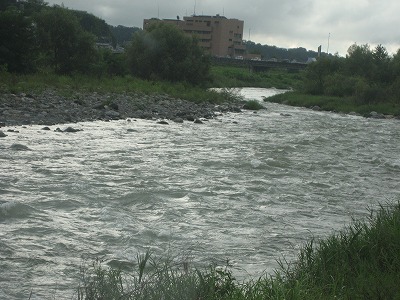 釜無川=20cm高 濁りで釣行は、無理です、