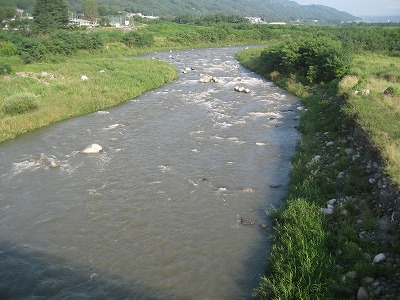 釜無川=水量は、大分下がってき、濁りも大分取れてきました、