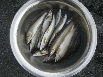 昨日の状況 塩 川 穂坂橋上下 17cm~24㎝ 7~16匹 岩根橋付近 16cm~24㎝ 6~19匹 釜無川 桐沢橋 友扱い店加賀さん裏から堰堤間 16cm~23cm 7匹~18匹 釜無橋 付近16cm~23cm 7~17匹 今日の状況 天気晴れ 塩 川 10cm減水 澄 釜無川 10cm減水 澄 AM 7:00 塩川 岩根橋 上流 釜無川 AM7:30 組合裏