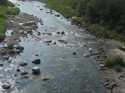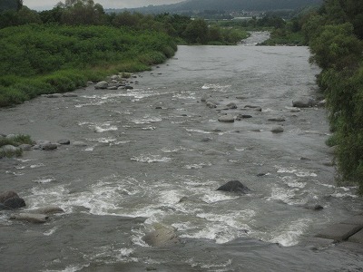 今朝の状況 天気 曇り 所々晴れ間が見えるといった、状況。 塩 川 昨日の濁りも取れて、水位 平水時より 20cm高 濁りなし。 釜無川 ほぼ平水 濁りなし、大武川水量豊富。 写真 AM7時~8時 釜無川 釜無橋 上流を望む 同上 下流 塩川 穂坂橋 上流を望む 同上 下流