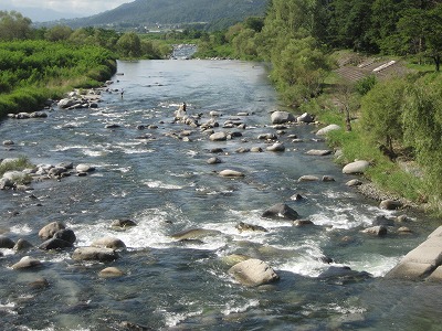 今朝の状況 天気晴れ 塩 川 ・釜無川 とも 平水 濁りなし 塩川午前7時 鷹巣橋 上流 同上 下流 釜無川 午前7時30分 穴山橋 下流 同上 上流