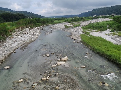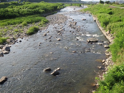 塩 川 水量減水ぎみ 澄み 各所で型の良い鮎が
