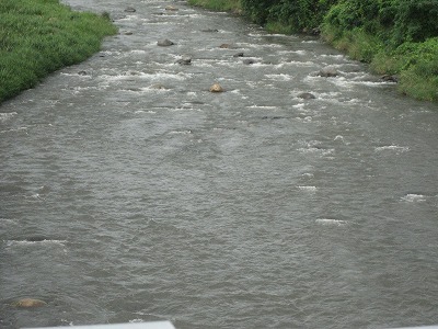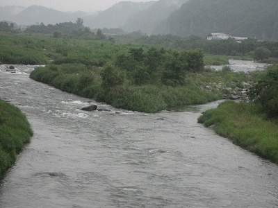毎日毎日雨に悩まされている今日このごろ 今年はほんとに異常な年ですね。 今日の状況は昨夜来の雨で濁りが各河川入った。 釜無川 25cm 高濁りあり少々 塩川 20cm 高 濁りあり少々 これからの状況は今夕から明朝にかけた降らなければ 明日あたりは竿は入ると思いますが、何れにしましても明朝 釣具店、友販売店に確認しての釣行でしょうか。 大武川は澄んでいます3人程釣り人がいました。