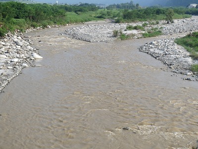 釜無川 昨日夕上流域で雷雨が有り濁りが入った、