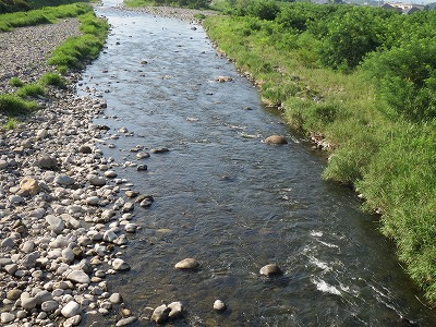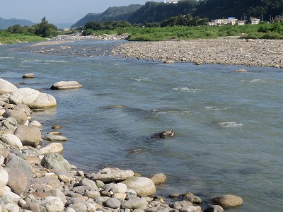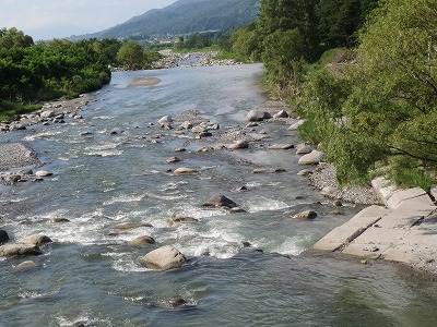 釜無川 平水に戻った、濁りも取れ澄んできました、鮎も大きくなって