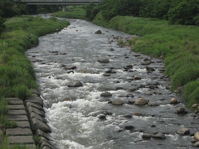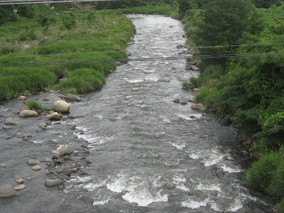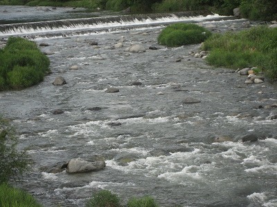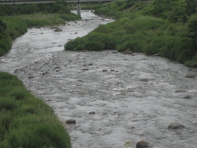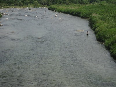 本日の状況 午前中は雲っていて蒸し暑く雨が パラッときたが、午後には蒸し暑さが増し太陽が顔 を出し夏本番の暑さだった。 梅雨明ももう直ぐそこのようだ。 釜無川、塩川とも釣果は今一ちです、塩 川 水位平水に 近し、澄んでいます、所々に青藻が発生してきた。 釜無川 10㎝高 澄み各所にはいるも先に述べたように 釣果今一 サイズも14cm~21㎝です、釣果平均4尾~5尾 といったところです。