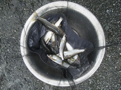 今日の状況 天気曇り時折雨の一日です。 釜無川 組合裏に入った甲府市矢崎様 14cm~21㎝ 14尾 型がバラツいていたが 楽しんで帰りました。 川の状況 水位20cm高 澄み 塩 川 水位 15cm高 澄み 両河川とも水温が低い影響か釣果が今一の ようです。 早く梅雨明にならないかなー。