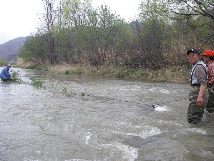 この対策の本番は第一回目のアユ放流の前日、4月20日を予定しています。