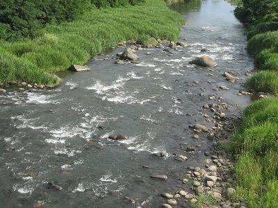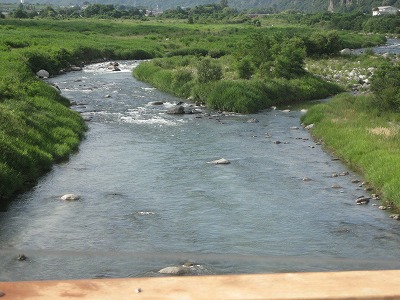 本日の状況 午前中は雲っていて蒸し暑く雨が パラッときたが、午後には蒸し暑さが増し太陽が顔 を出し夏本番の暑さだった。 梅雨明ももう直ぐそこのようだ。 釜無川、塩川とも釣果は今一ちです、塩 川 水位平水に 近し、澄んでいます、所々に青藻が発生してきた。 釜無川 10㎝高 澄み各所にはいるも先に述べたように 釣果今一 サイズも14cm~21㎝です、釣果平均4尾~5尾 といったところです。
